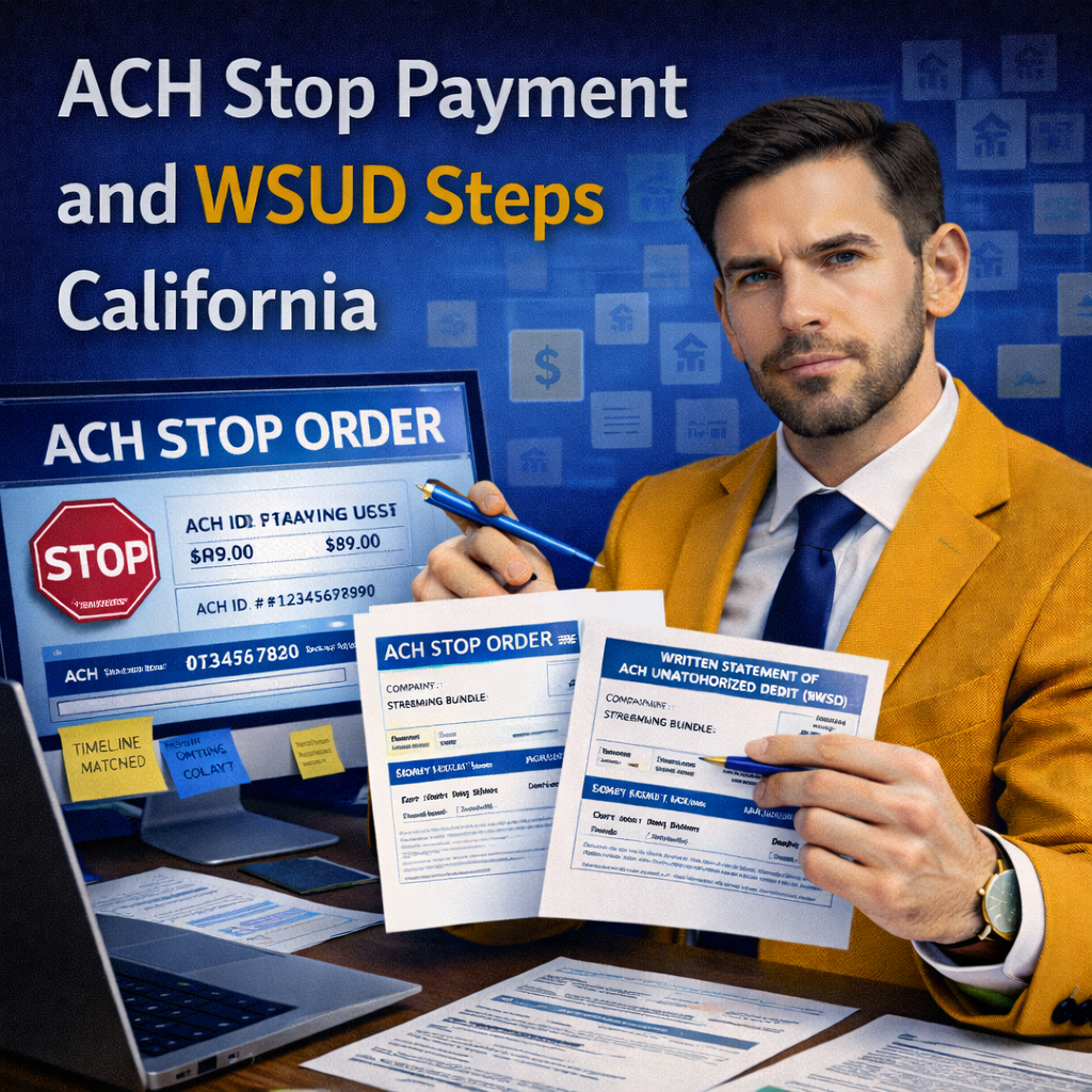 A consumer in California cancels a streaming bundle and receives a cancellation email. Two weeks later, an ACH debit posts with the same merchant name. The consumer immediately requests a stop payment for any future debits tied to that originator name and submits a dispute with the cancellation proof attached. The bank requests a WSUD because the consumer states the debit was not authorized after revocation. With the timeline and documents consistent, the bank starts the investigation, discusses provisional credit, and prevents the next scheduled debit from posting.