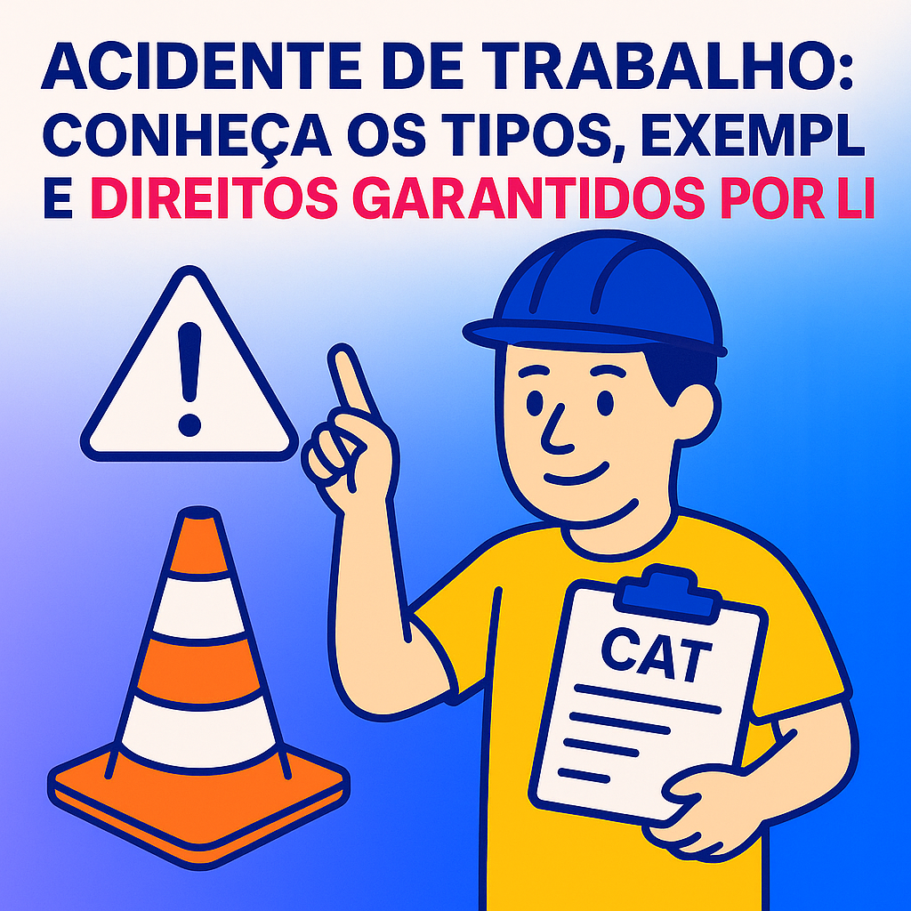 Os principais tipos são: acidente típico (ocorrido no ambiente de trabalho), doença ocupacional (profissional ou do trabalho) e acidentes equiparados, como os de trajeto ou causados por terceiros.