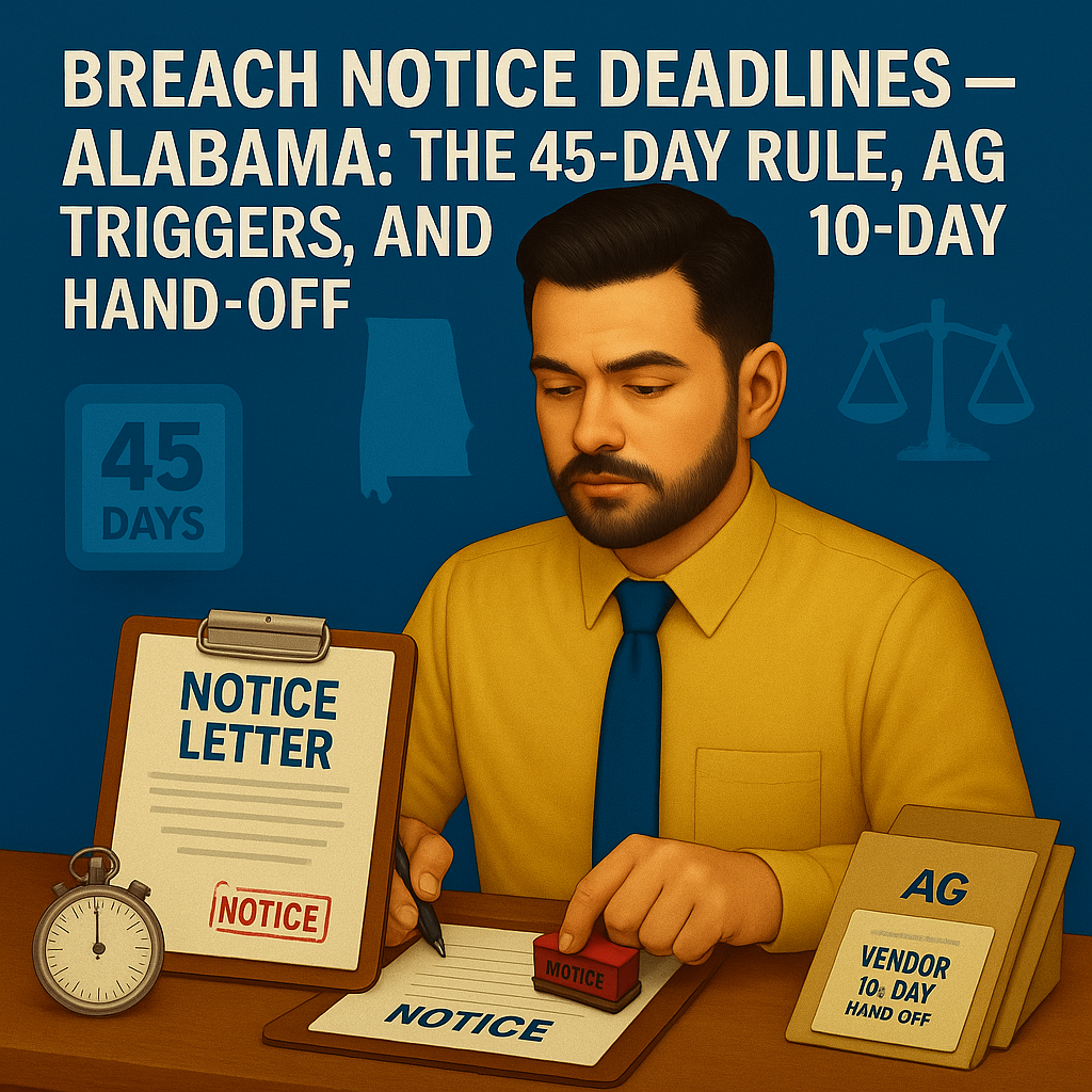 Breach Notice Deadlines — Alabama: The 45-Day Rule, AG Triggers, and Vendor 10-Day Hand-Off