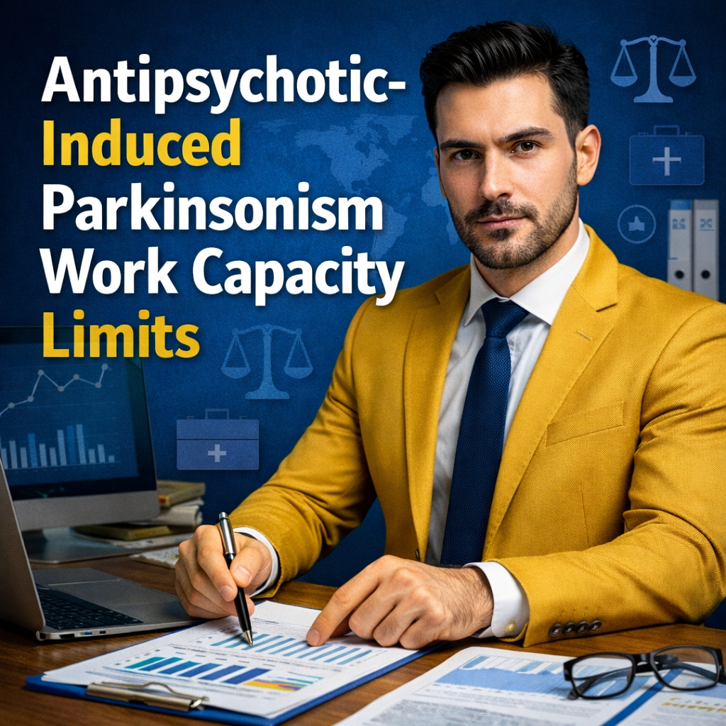 Parkinsonism induced by antipsychotic medication can materially reduce sustained work capacity, especially when motor slowing, rigidity, tremor, and balance changes interfere with precision, pace, and safe mobility. The most persuasive disability presentations usually show a coherent timeline, consistent clinical observations, and clear functional translation into job-task limits.