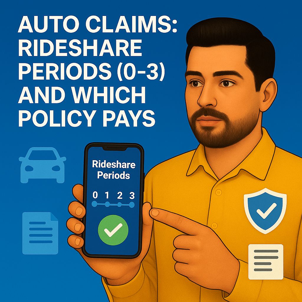 One-sentence rule: Pin down the period with screenshots, match each loss type to the policy that’s primary in that period, and use a rideshare endorsement to close the Period-1 gap.