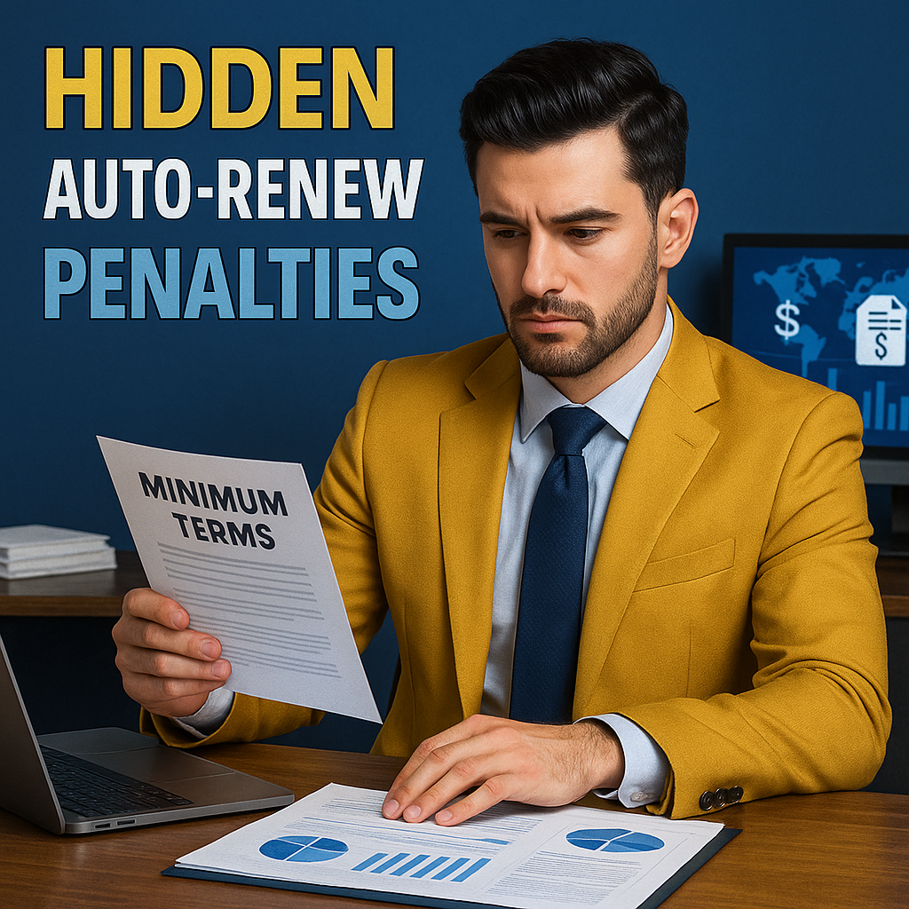 Auto-renew contracts are often marketed as a convenient way to keep services running without interruption. The problem becomes serious when a hidden minimum term is tied to the auto-renew, preventing cancellation or triggering heavy penalties long after the initial decision.