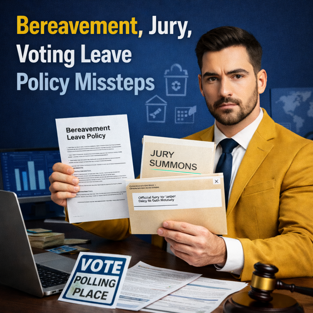 Bereavement, jury duty, and voting leave policies tend to look simple on paper, yet they often create disputes when a real situation hits and the policy language is vague.