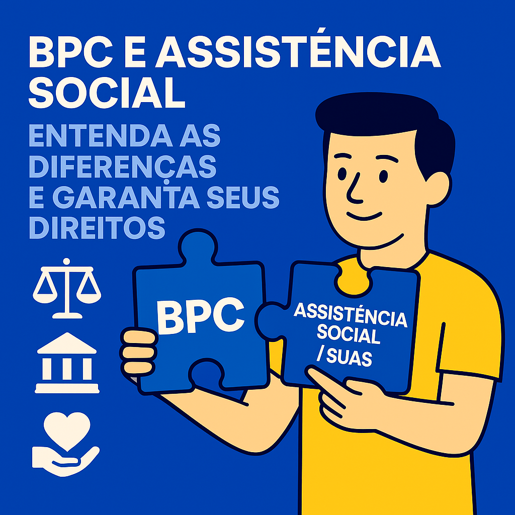 Distinção prática: o BPC é um direito individual que substitui renda mínima; a assistência social é rede de proteção que oferta acompanhamento e serviços às famílias e comunidades. Uma pessoa pode não ter BPC e ainda assim ser atendida pelo SUAS (e vice-versa).