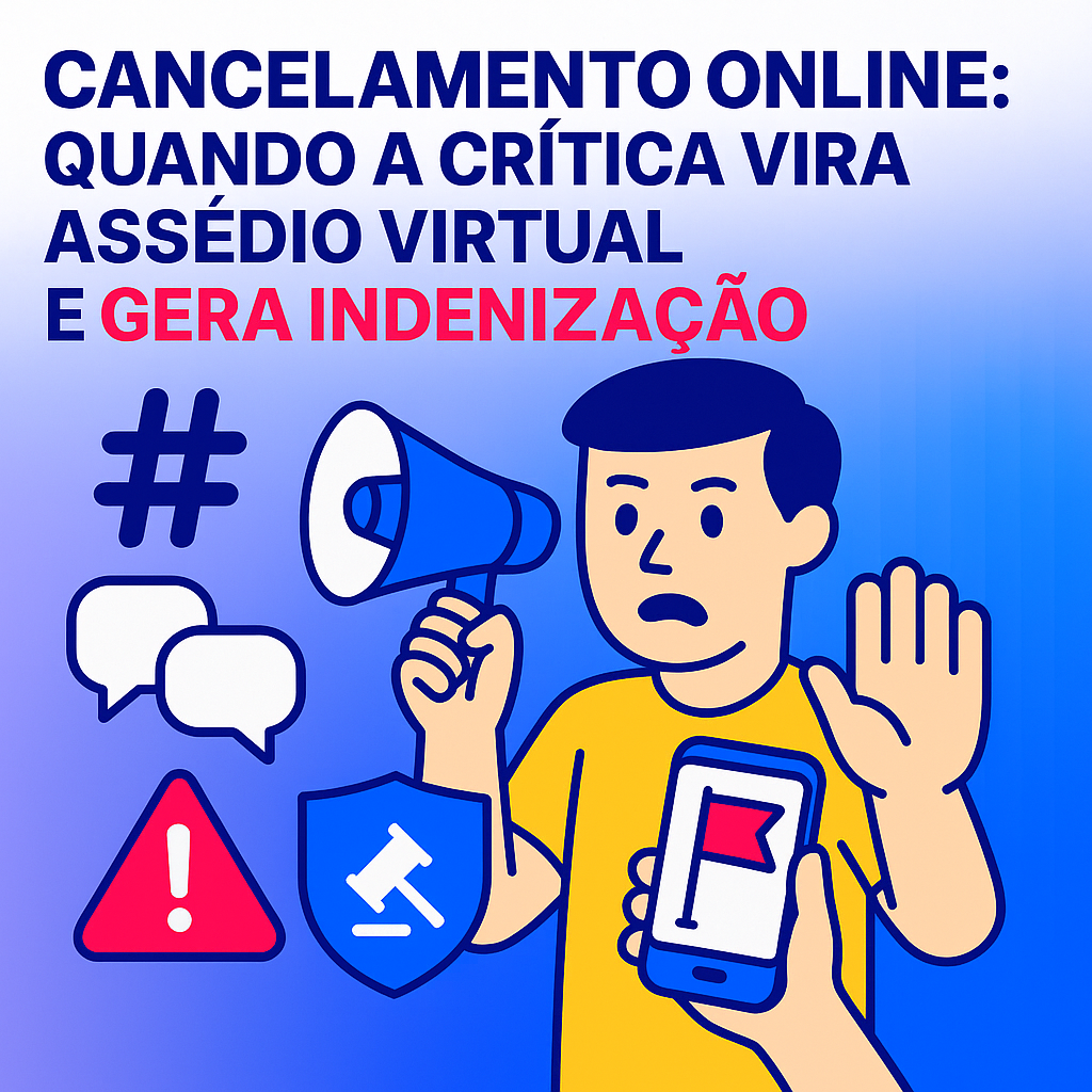 O chamado cancelamento online passou a designar a mobilização de usuários para criticar, boicotar ou pressionar alguém (pessoa física, influenciador, empresa) por supostas condutas reprováveis. Esse fenômeno, que pode nascer como discurso crítico amparado pela liberdade de expressão (CF/88, art. 5º, IV e IX), frequentemente desliza para assédio virtual (cyberbullying, perseguição, humilhação pública, vazamento de dados, incitação ao linchamento digital) e, a partir daí, gera responsabilidade civil e, às vezes, penal. O direito brasileiro protege a honra, a imagem, a privacidade e a integridade psicossocial (CF/88, art. 5º, V e X) e impõe limites ao abuso comunicacional: quando a crítica se converte em ofensa, difamação, injúria ou calúnia, há suporte para indenizações, direito de resposta e medidas inibitórias/urgentes de remoção de conteúdo.
