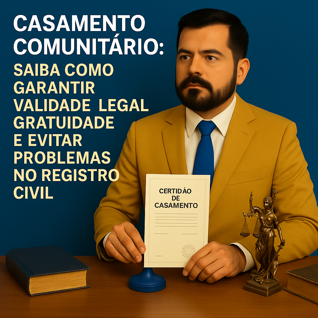O casamento comunitário é válido e produz todos os efeitos do casamento civil, desde que observadas as etapas de habilitação, proclamas, celebração por autoridade competente e registro. Planeje documentos, considere o regime de bens adequado e utilize a gratuidade legal quando cabível. Assim, você oficializa sua família com segurança e sem sustos financeiros.
