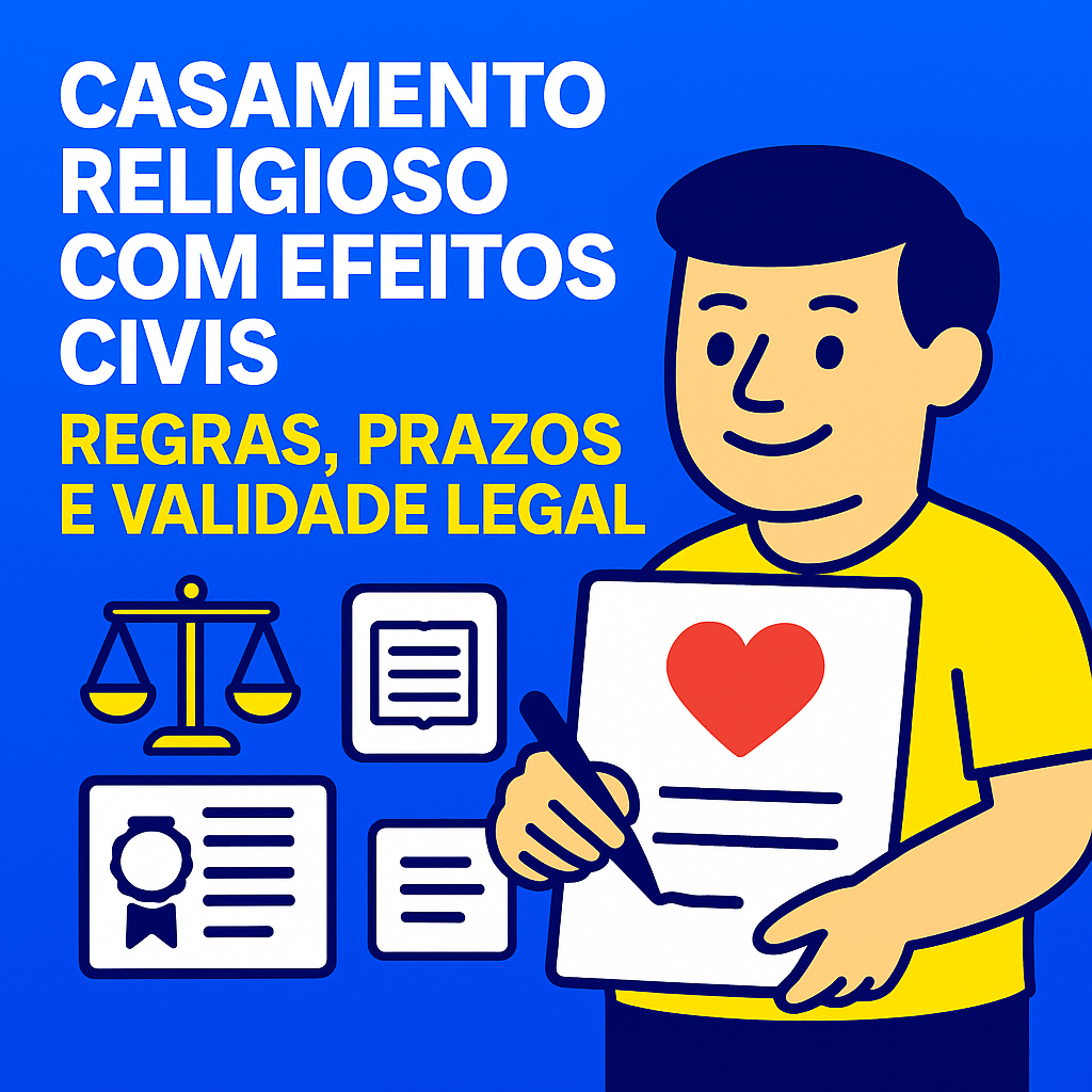 - Mensagem final: O casamento religioso com efeitos civis une fé e legalidade; planejamento e prazos garantem validade e segurança jurídica.