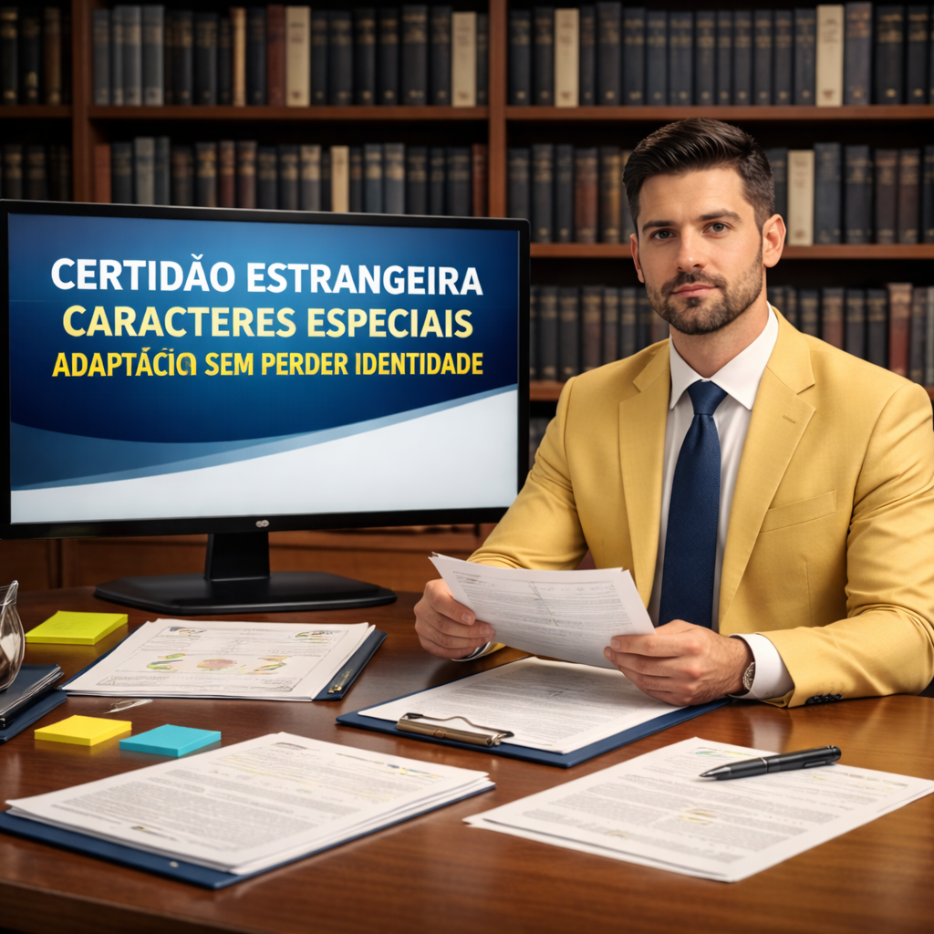 Definição rápida: certidão estrangeira com caracteres especiais é o registro civil emitido fora do Brasil em que o nome da pessoa utiliza letras, sinais, acentos ou combinações gráficas não previstas no padrão registral brasileiro.
