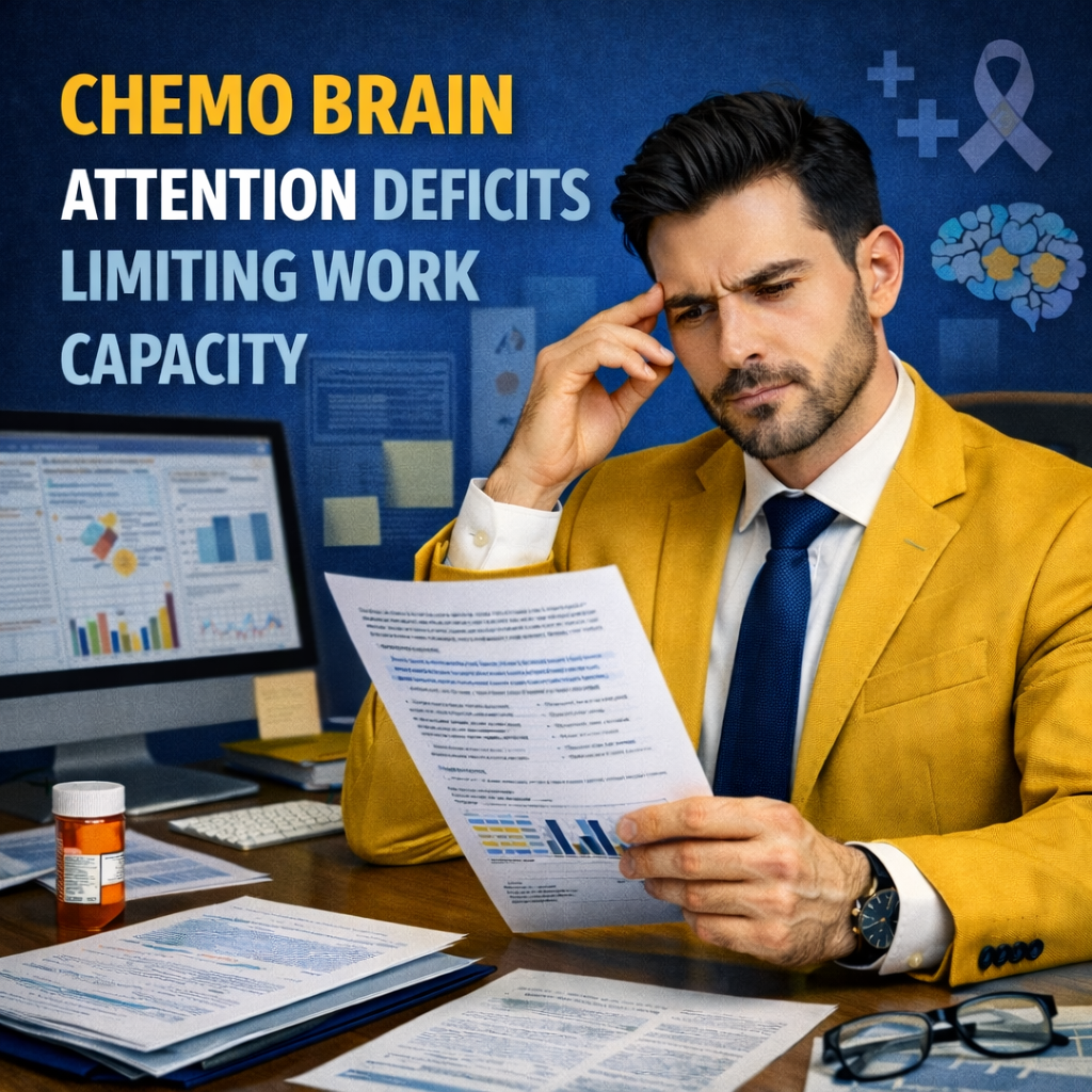 Chemo-related attention problems can disrupt work performance, and clear documentation helps clarify medical and benefit options.