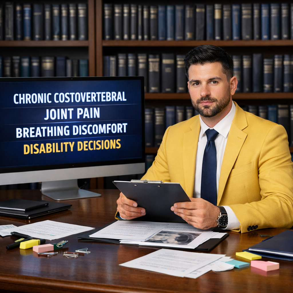 This article looks at chronic costovertebral joint pain with breathing discomfort as a concrete disability problem: which clinical patterns usually convince adjudicators, what documentation is expected, how evidence of effort, function, and course over time is weighed, and where files tend to break down in practice.