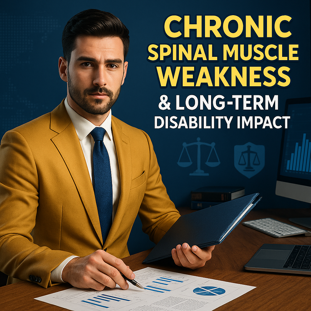 Clinically, this weakness appears as difficulty maintaining posture, abnormal spinal curvature, instability when walking and reduced tolerance to prolonged sitting or standing. In legal and benefit claims, the focus is how these limitations interfere with safe and continuous work performance.
