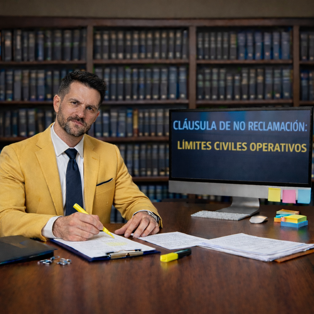 La cláusula de no reclamación puede ser útil para estabilizar acuerdos y evitar discusiones recurrentes, pero su validez en civil depende de límites operativos: objeto definido, hechos identificados, periodo claro y compatibilidad con derechos disponibles y normas imperativas.