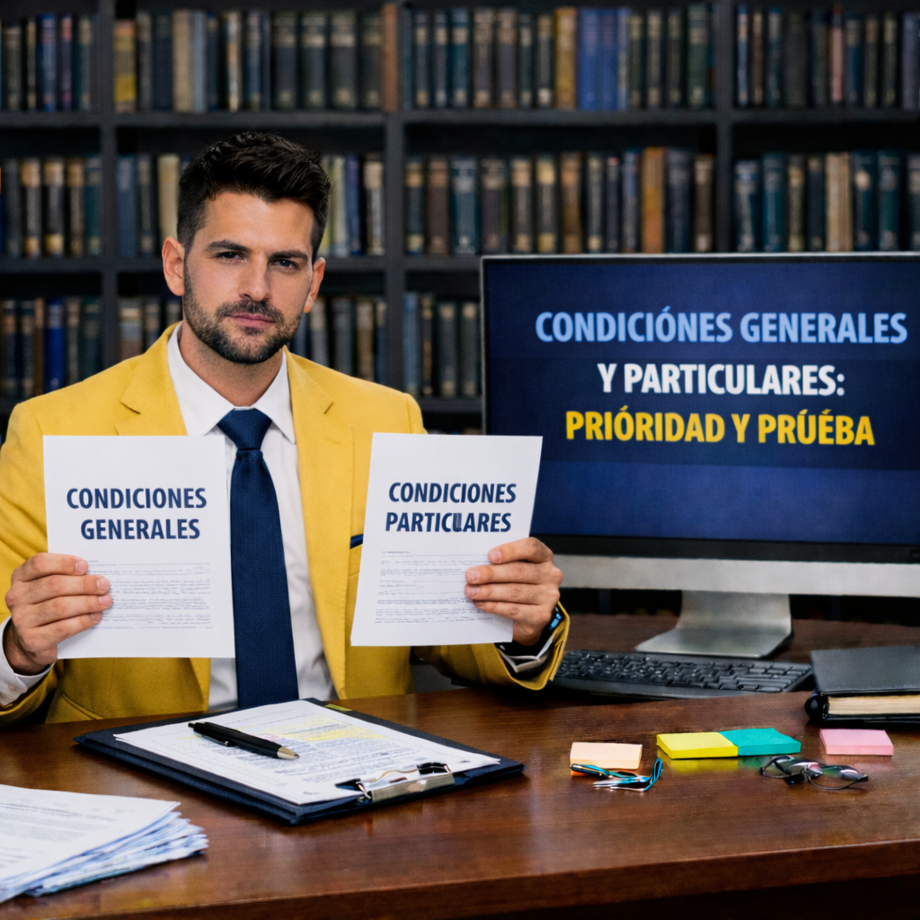 En muchos casos, lo pactado de forma específica tiene prioridad cuando existe contradicción real. Aun así, la solución depende de la redacción, la coherencia del contrato y la prueba de incorporación del texto aplicable, especialmente si se discuten limitaciones o exclusiones.