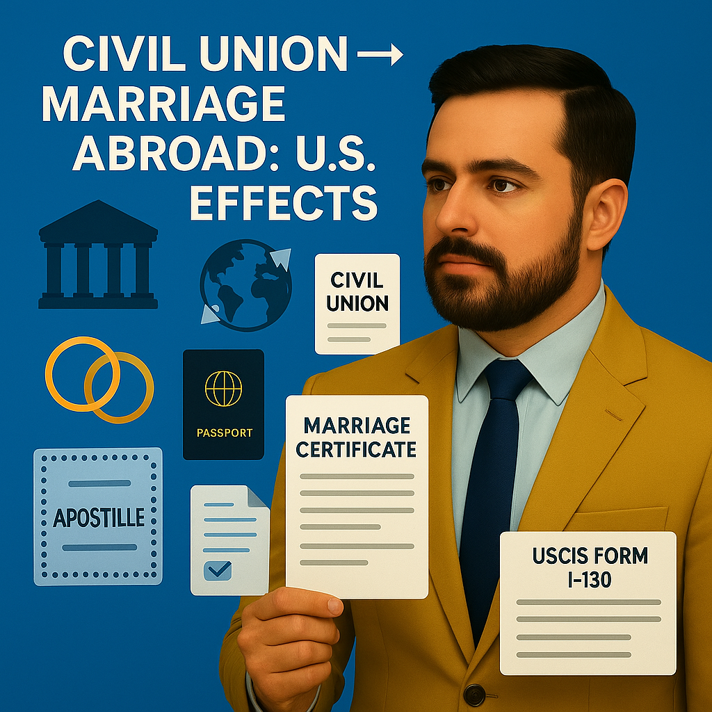 When couples in a civil union abroad convert their status to a legal marriage, several legal consequences may arise once they move or file petitions in the United States. This conversion can affect immigration petitions, tax filings, Social Security benefits, inheritance rights, and family law recognition. The main issue lies in whether the U.S. or specific states recognize the converted marriage as valid from the date of the civil union or from the date of marriage conversion.