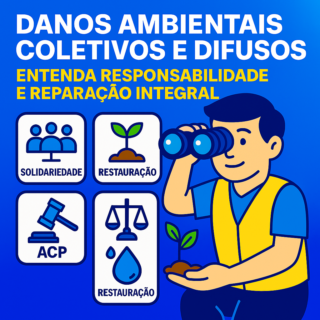 - O que são: danos que atingem titulares indeterminados (difusos) ou grupos determináveis ligados por uma relação comum (coletivos), causando degradação de água, ar, solo, fauna, flora e serviços ecossistêmicos.