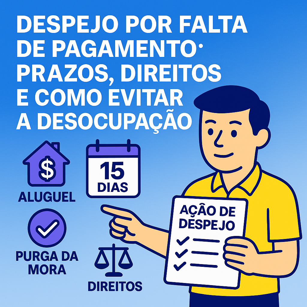 O despejo por falta de pagamento é a medida judicial que o locador utiliza quando o locatário deixa de pagar o aluguel e/ou os encargos da locação (condomínio, IPTU, água, luz, multa contratual, entre outros), conforme as regras da Lei do Inquilinato (Lei nº 8.245/1991). Além de proteger o credor, a legislação também assegura direitos do inquilino, como a possibilidade de purgar a mora (pagar o débito para manter-se no imóvel, nas condições legais) e de receber prazos mínimos para desocupação em determinadas situações. Este guia explica, de forma prática e estruturada, os prazos, as etapas processuais e os direitos e deveres de cada parte, destacando pontos críticos de estratégia e provas.