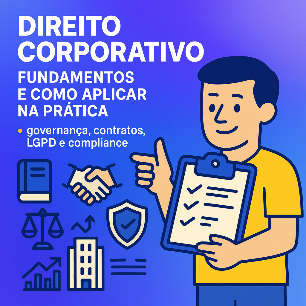 Direito Corporativo é a aplicação integrada de ramos jurídicos (societário, contratos, trabalhista, tributário, PI/LGPD, compliance, mercado de capitais) à gestão do negócio. Foca em governança, prevenção de riscos e criação de valor.