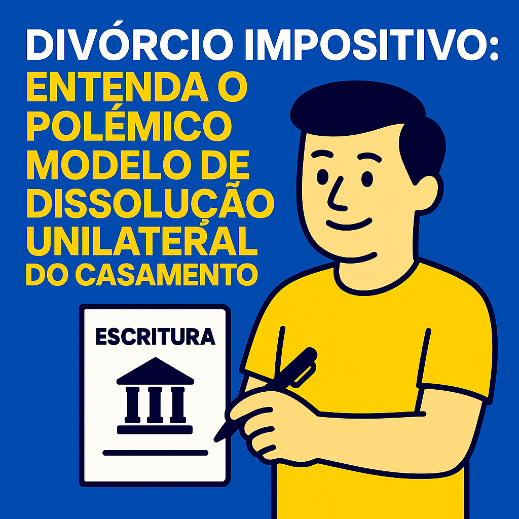 “Divórcio impositivo” identifica uma ideia de divórcio unilateral em cartório que, hoje, não está autorizada pelo ordenamento brasileiro. O arcabouço em vigor é claro: a Constituição reconhece o divórcio como direito potestativo e eliminou entraves; a legislação infraconstitucional e os atos do CNJ regulam o divórcio extrajudicial consensual (presencial ou on-line), com assistência de advogado; e o divórcio sem consenso deve ser buscado no Judiciário, onde será decretado independentemente da vontade do outro cônjuge. Caso, no futuro, o Congresso edite lei específica para o procedimento impositivo em cartório, certamente ela terá de endereçar proteções a incapazes, publicidade registral, efeitos patrimoniais e mecanismos de impugnação, garantindo segurança jurídica e respeito a terceiros.