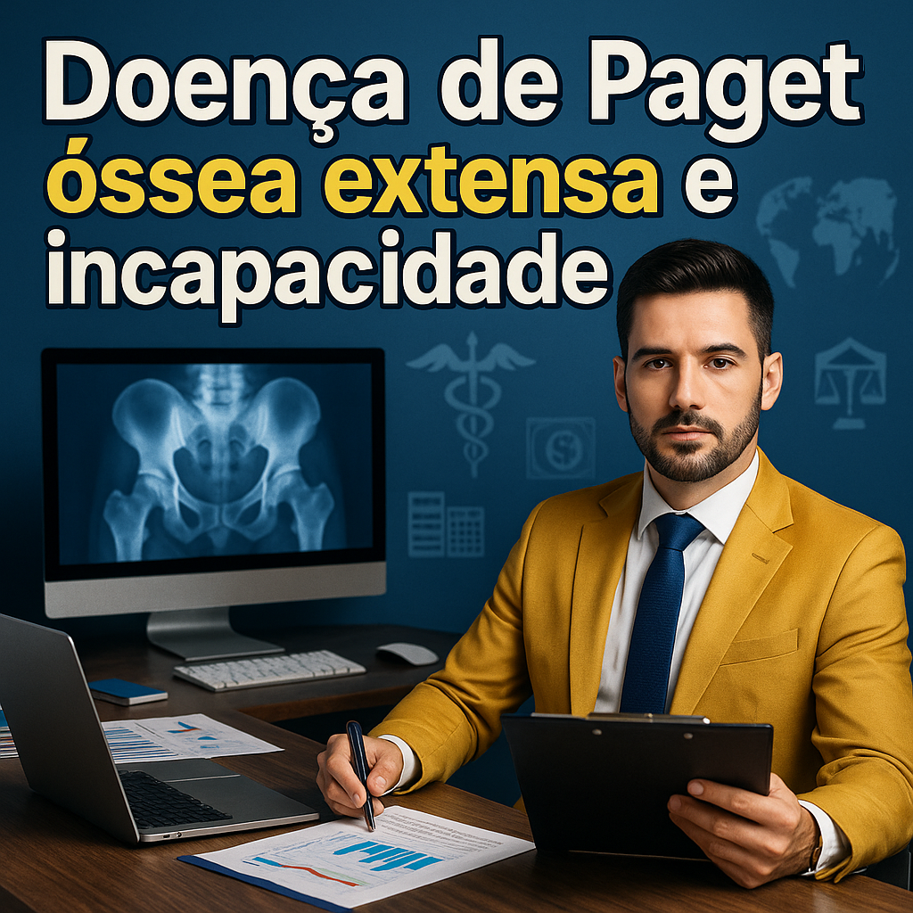 A Doença de Paget óssea extensa pode ter grande repercussão funcional, especialmente quando envolve membros inferiores e coluna, com dor, deformidades e fraturas. Para fins previdenciários, a robustez do caso costuma depender menos do nome da doença e mais da prova objetiva sobre limitações e exigências do trabalho habitual.