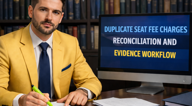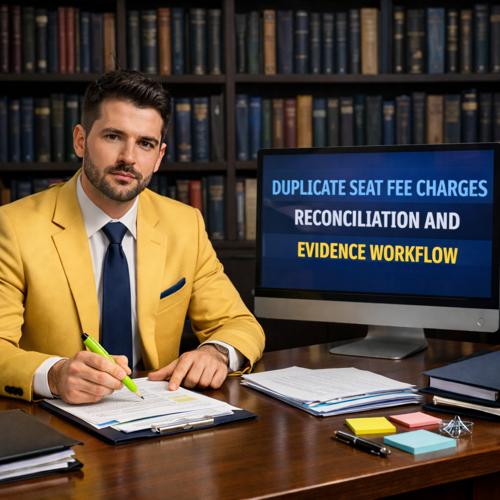 - Define the alleged duplicate: identify both seat fee charges by date, amount, and reference in the booking system.