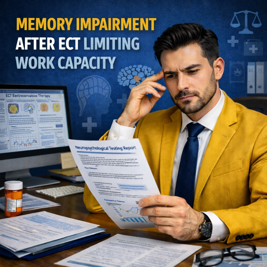 Memory impairment associated with an ECT history can be difficult to evaluate without a clear functional narrative. The most effective presentation typically combines a timeline, objective cognitive assessment when available, and real-world examples showing how limitations affect sustained work performance.