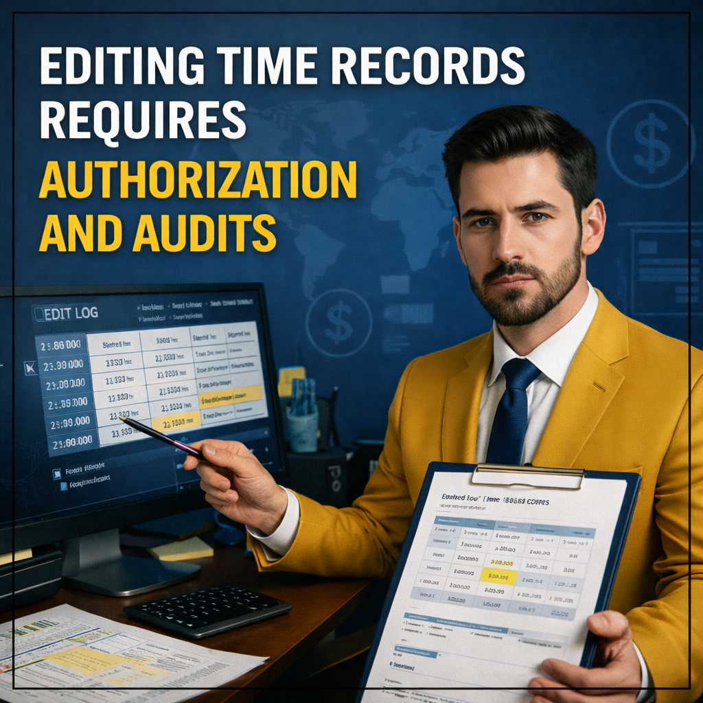 - Use reason codes for edits (missed punch, meeting overrun, system outage).