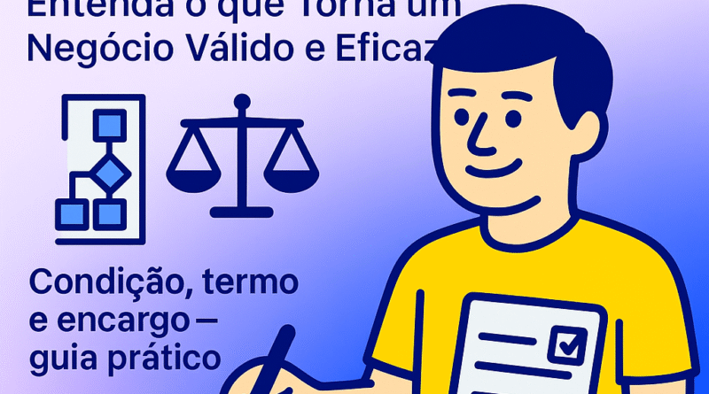É o acontecimento futuro e incerto do qual as partes fazem depender o nascimento ou a extinção de efeitos. Pode ser suspensiva (o contrato só produz efeitos quando a condição ocorre) ou resolutiva (os efeitos cessam se o evento ocorrer). Condições ilícitas, impossíveis ou que dependam apenas do arbítrio puro de uma parte (a chamada condição puramente potestativa, em especial se suspensiva) são invalidadas. Exemplos: compra de imóvel “sob condição” de aprovação de financiamento; contrato de distribuição que se resolve se meta mínima não for alcançada por três trimestres consecutivos.