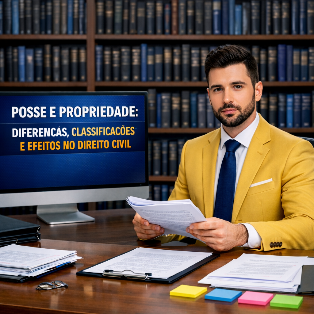 Este conteúdo organiza as diferenças, classificações e efeitos jurídicos da posse e da propriedade, com foco em critérios práticos, lógica de prova e caminhos que costumam definir o desfecho no direito civil.