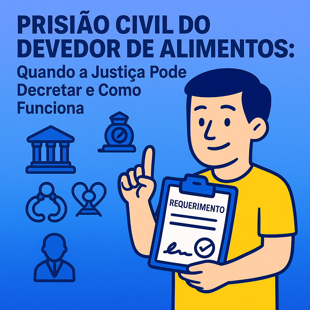 Essência do guia: a prisão civil é aplicada quando o devedor deixa de pagar parcelas recentes de pensão, não apresenta justificativa válida e é intimado sem cumprir a obrigação. Trata-se de uma ferramenta emergencial e eficaz para assegurar a dignidade de quem depende dos alimentos.