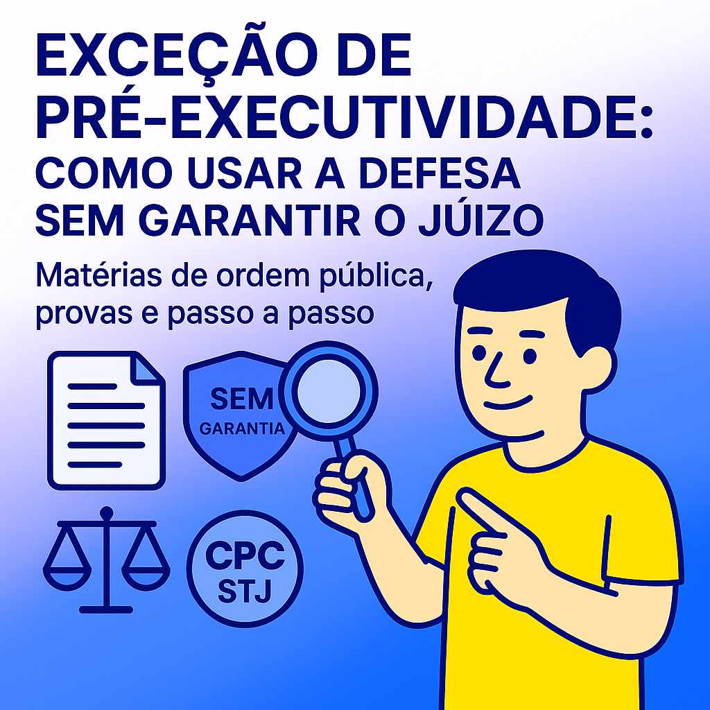 A exceção de pré-executividade é uma via excepcional, mas extremamente útil, para impedir que a execução prossiga quando há vícios patentes ou matérias de ordem pública demonstráveis por prova documental. Usada com técnica, preserva a segurança jurídica, a eficiência e o devido processo legal. Empregá-la como atalho para teses complexas, contudo, desvirtua sua razão de ser e costuma gerar indeferimentos e atritos processuais. O caminho seguro é: diagnóstico preciso do vício, prova pré-constituída robusta, pedidos objetivos e respeito aos limites da cognição sumária. Assim, evita-se o dano, corrige-se o curso do processo e concentra-se energia jurisdicional onde ela efetivamente produz resultados.