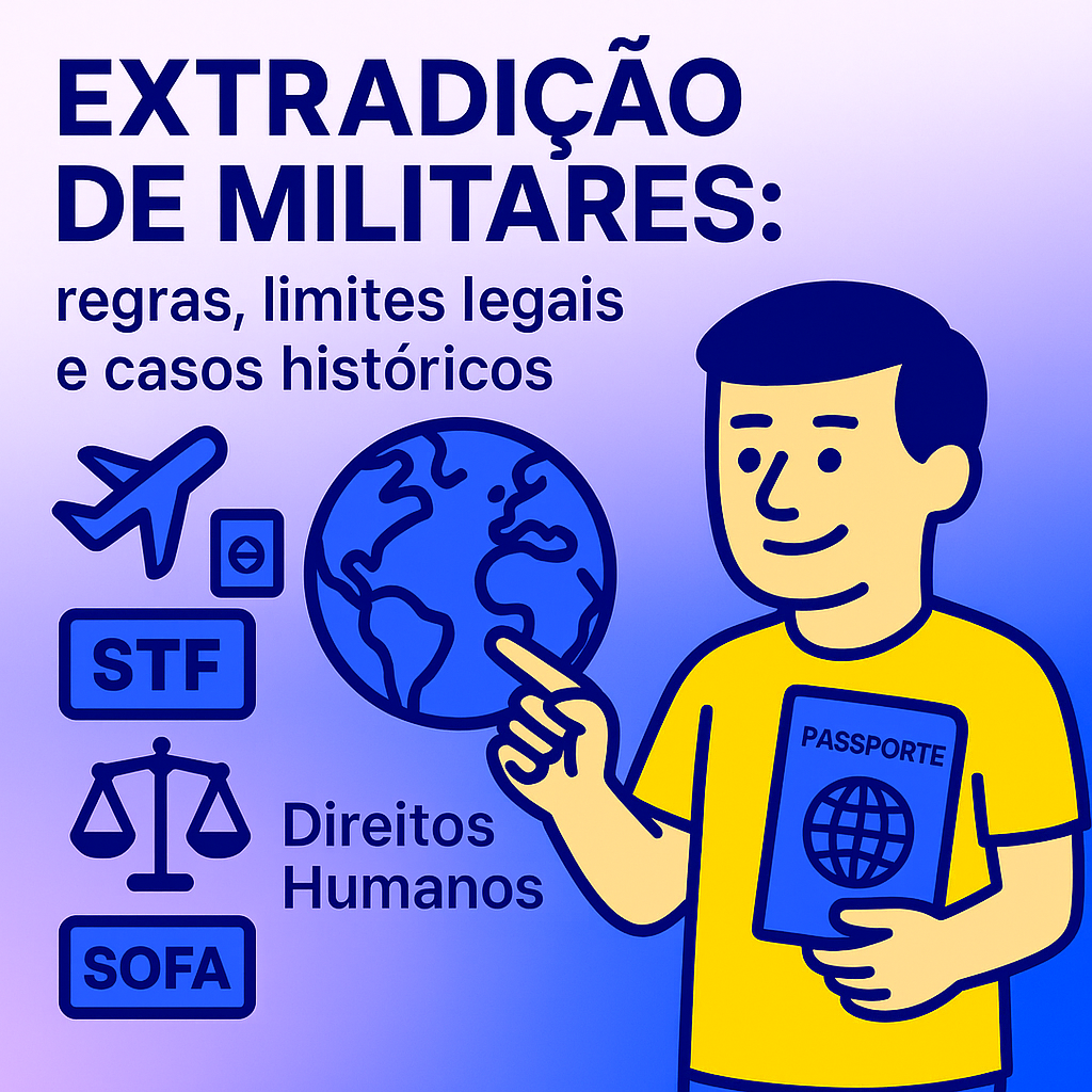 A extradição é o mecanismo de cooperação jurídica internacional pelo qual um Estado (requerido) entrega a outro (requerente) pessoa acusada ou condenada pela prática de crime, para fins de processo ou execução de pena. Quando o requerido é militar — em serviço ou na reserva — o procedimento continua sendo penal e pessoal: não se trata de um ato entre Forças Armadas, mas entre Estados, regido por tratados bilaterais/multilaterais, pelo direito interno e por princípios do direito internacional público. O status castrense influencia variáveis críticas (foro, natureza do delito, eventuais imunidades funcionais, existência de acordo de status de forças – SOFA, e a linha tênue entre crime militar, crime comum e crime internacional).
