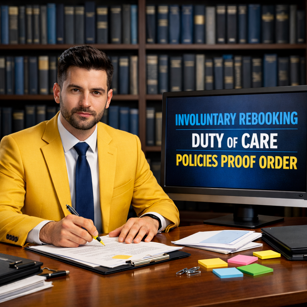 Disputes over involuntary rebooking hinge on clear duty-of-care rules, documented options, and a coherent proof trail.