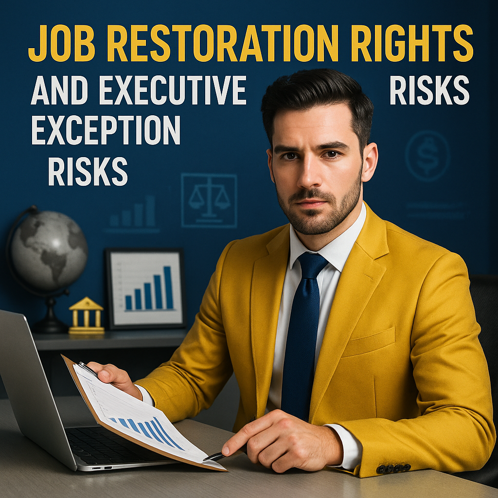 The central challenge in job restoration and the key employee exception is balancing strong job protection with legitimate business needs in high-impact roles. Errors can undermine trust at senior levels and expose organizations to significant liability.