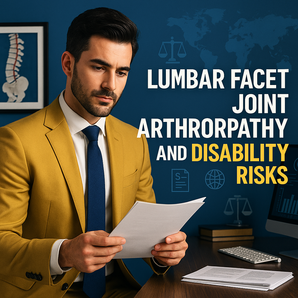 Lumbar facet joint arthropathy with chronic pain sits at the crossroads between medicine, work and social security. Properly documenting symptoms, treatments and functional limitations is crucial to avoid unjust denials of benefits and to guide realistic rehabilitation strategies.