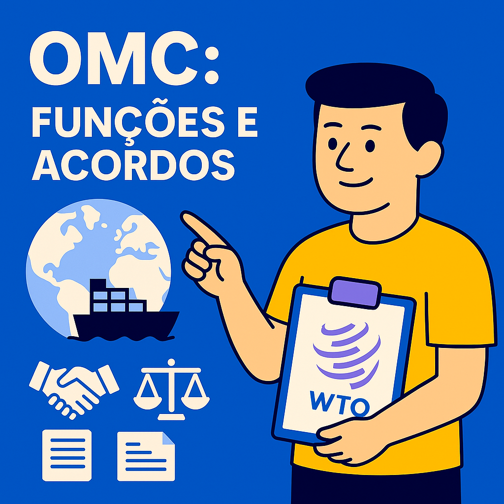 A Organização Mundial do Comércio (OMC) é a instituição internacional que estabelece as regras do comércio entre seus membros e provê mecanismos para a solução de controvérsias. Criada pelo Acordo de Marraqueche (1994, em vigor desde 1995), sucedeu ao GATT (Acordo Geral sobre Tarifas e Comércio, de 1947), ampliando o escopo das disciplinas para além de bens, incluindo serviços e propriedade intelectual. Hoje, a OMC congrega a ampla maioria das economias do planeta, cobrindo parcela dominante do comércio mundial.