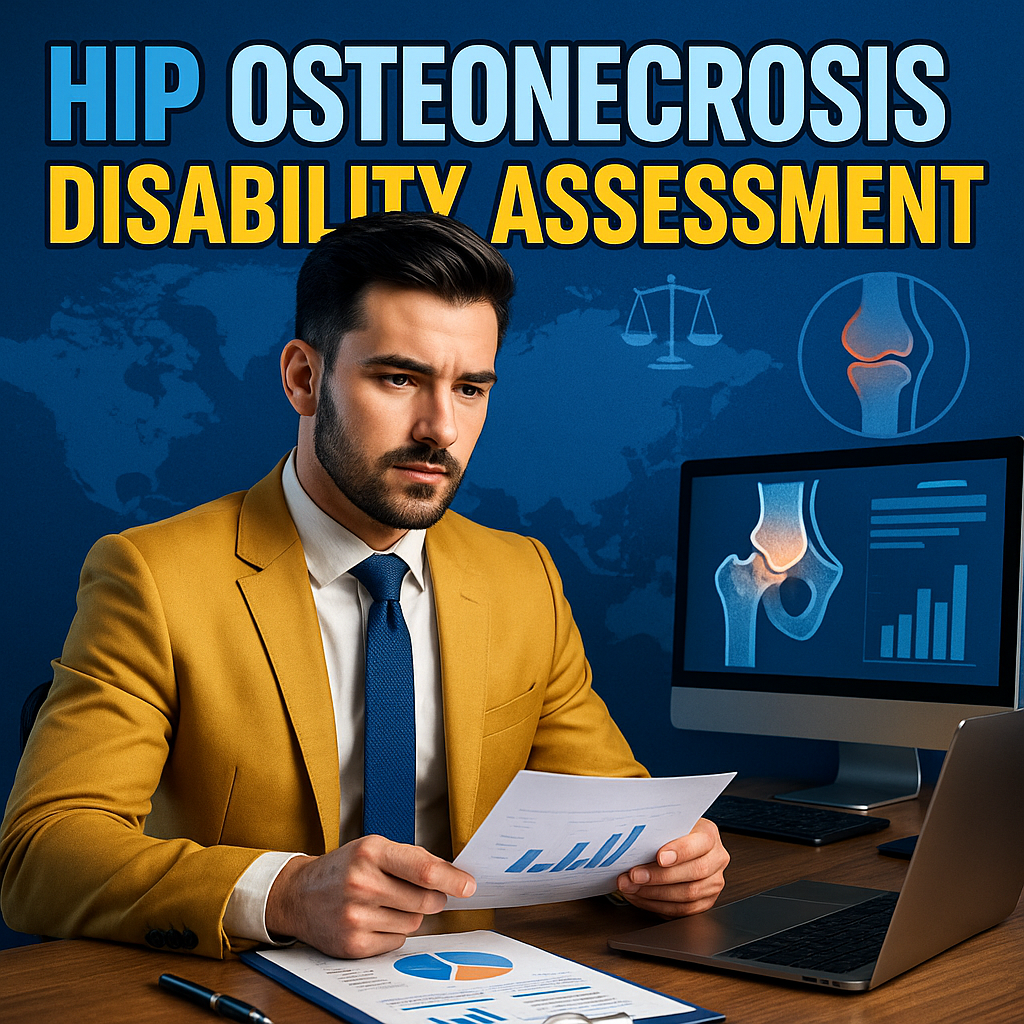 Osteonecrosis of the hip with collapse of the femoral head combines complex medical management with sensitive disability evaluations. The central challenge is to connect clinical and imaging findings with concrete limitations in daily activities and work demands.