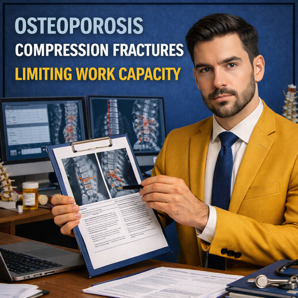 Osteoporosis with multiple compression fractures can be medically clear yet legally challenging when the record does not translate the condition into concrete, sustained functional limits.