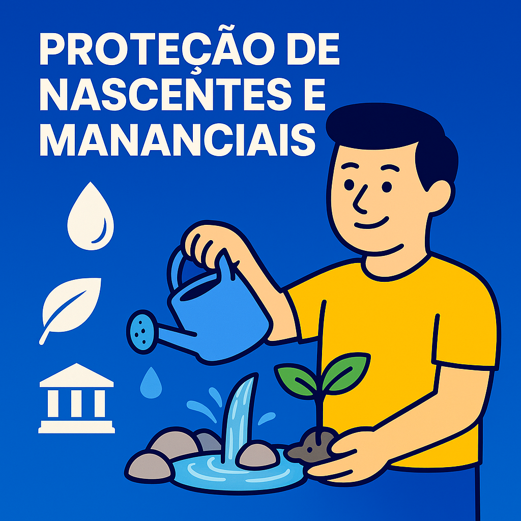 A Constituição Federal de 1988, em seu artigo 225, estabelece que todos têm direito ao meio ambiente ecologicamente equilibrado e impõe ao poder público e à coletividade o dever de defendê-lo e preservá-lo. Esse princípio orienta toda a política de proteção dos recursos hídricos, em especial das nascentes e mananciais.