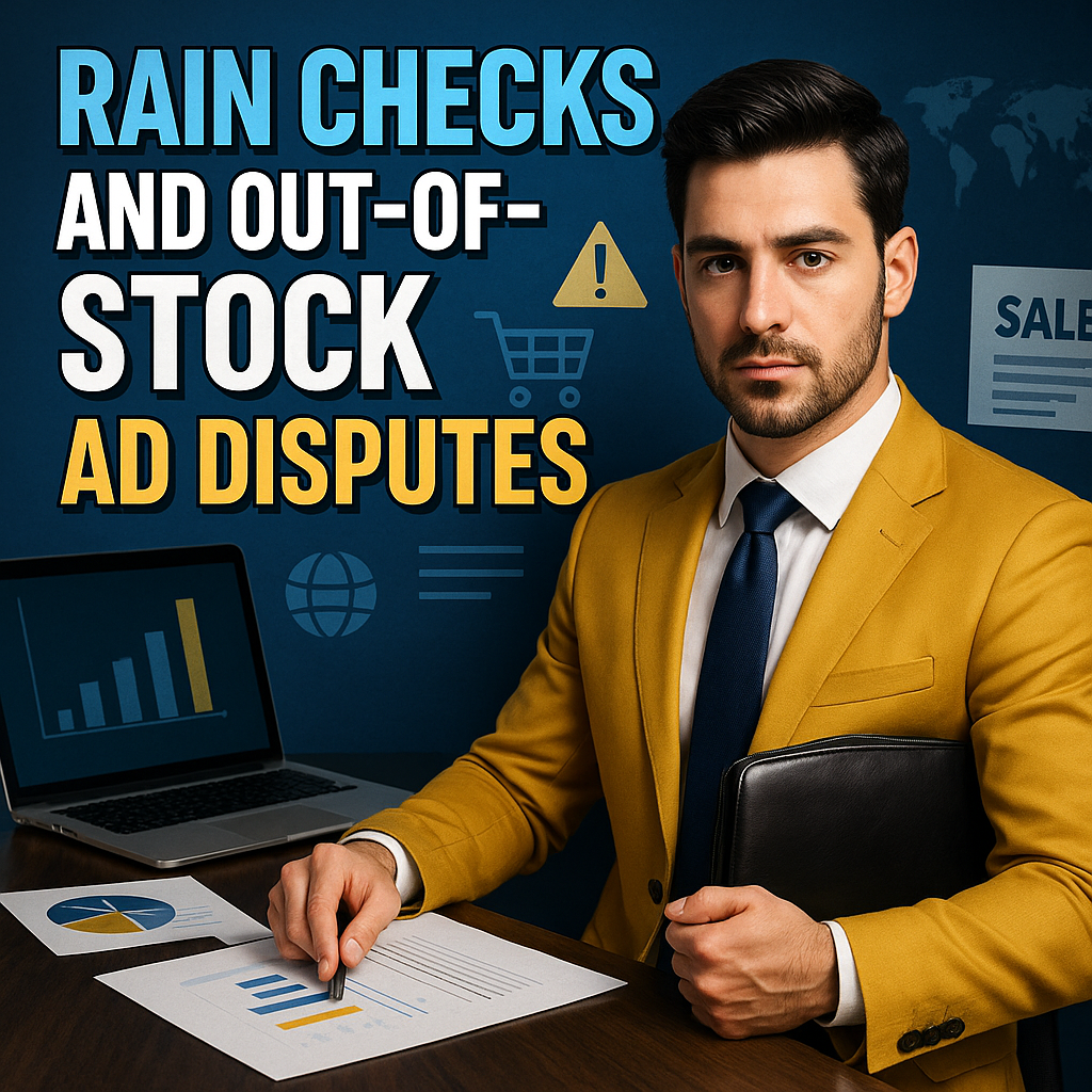 Rain checks and out-of-stock advertising disputes usually turn on transparency: what the promotion promised, what limitations were disclosed, and how the retailer responded when supply ran out. Clear documentation and a consistent remedy often resolve matters quickly.
