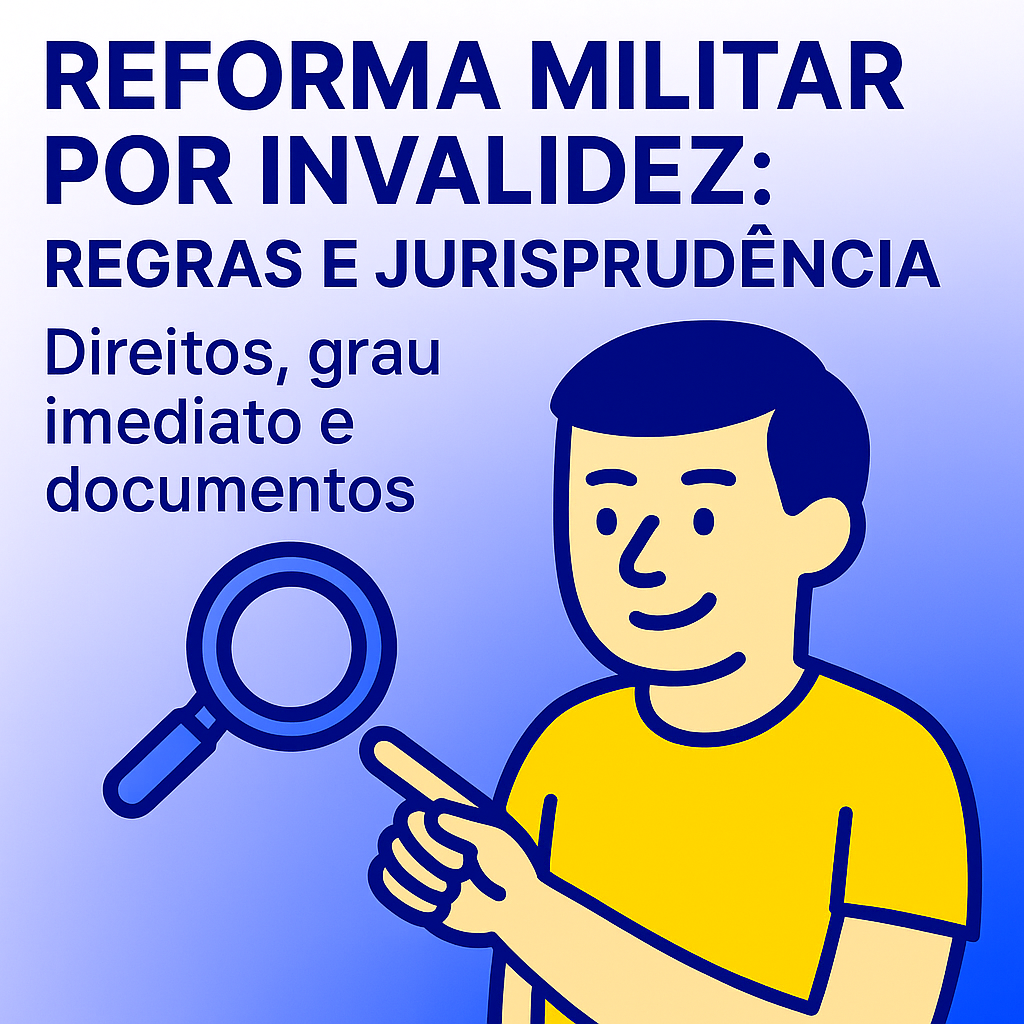 A reforma militar por invalidez exige a articulação de prova médica robusta, enquadramento legal correto e procedimento administrativo regular. A chave para resultados consistentes está em distinguir incapacidade militar de invalidez total, documentar o nexo com o serviço ou o enquadramento em moléstia do rol, e compreender quando há – e quando não há – direito ao grau hierárquico imediato. No cenário pós-2019, a possibilidade de revisão da reforma impõe atenção contínua ao estado clínico e ao cumprimento das convocações, sempre com base na legalidade e na segurança jurídica. Com preparação e informação, é possível proteger o direito do militar e da sua família dentro dos parâmetros legais e jurisprudenciais atuais.