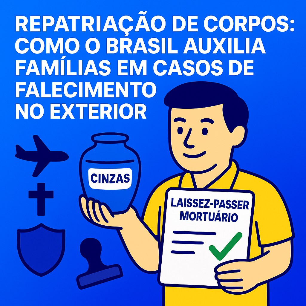 A repatriação de corpos de brasileiros falecidos no exterior é o processo logístico-jurídico que permite trazer ao Brasil o corpo (ou as cinzas) de um cidadão que morreu fora do país, para sepultamento ou cerimônia com a família. Trata-se de uma operação sensível, que exige coordenação entre família, autoridades locais (polícia, medicina legal, saúde), serviços funerários habilitados, companhias aéreas e órgãos brasileiros (consulado/embaixada, vigilância sanitária, cartórios, Receita e PF). O consulado brasileiro orienta, registra o óbito para efeitos civis e informa os requisitos, mas não arca com custos privados — salvo casos raros de extrema vulnerabilidade tratados em outras políticas. Na prática, a família escolhe entre três caminhos: sepultamento no país do óbito, cremação com traslado de cinzas ou traslado internacional do corpo em caixão homologado.