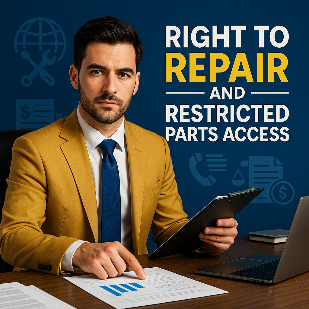 It is important to distinguish between refusal to repair, refusal to sell parts, and conditions imposed on access to manuals or diagnostic software. Each situation can lead to different legal strategies and requires analysis of contracts, technical documentation and regulatory standards.