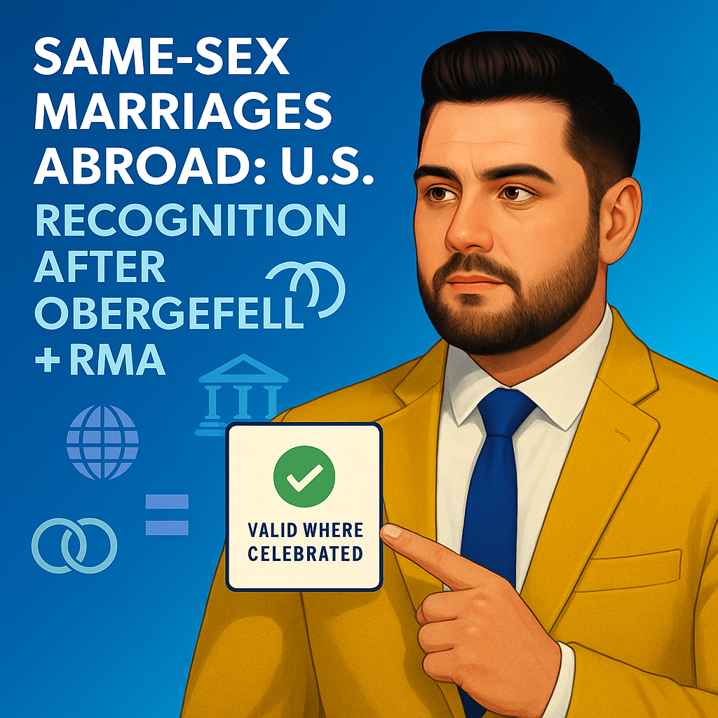 Objective: explain how U.S. courts and agencies treat same-sex marriages celebrated abroad after Obergefell v. Hodges, how the place-of-celebration rule applies, what the Respect for Marriage Act (2022) adds, and the evidence you need for smooth recognition across immigration, benefits, and court contexts.