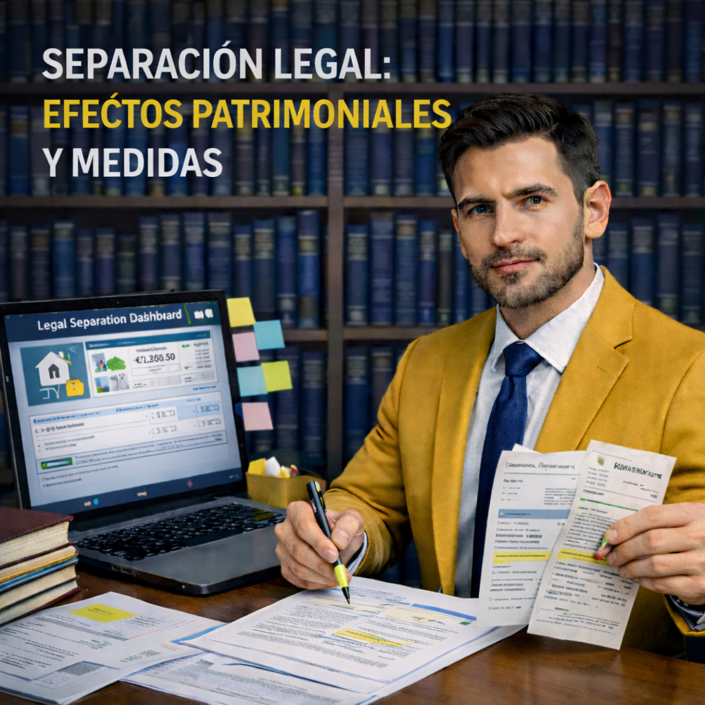 En la práctica, la separación legal se conecta con el régimen económico matrimonial: en algunos supuestos puede implicar el cese de ciertos efectos de la sociedad de gananciales y ordenar cómo se atienden gastos y deudas. La vía concreta y sus consecuencias dependen de la situación patrimonial, la existencia de hijos y la forma de tramitación.