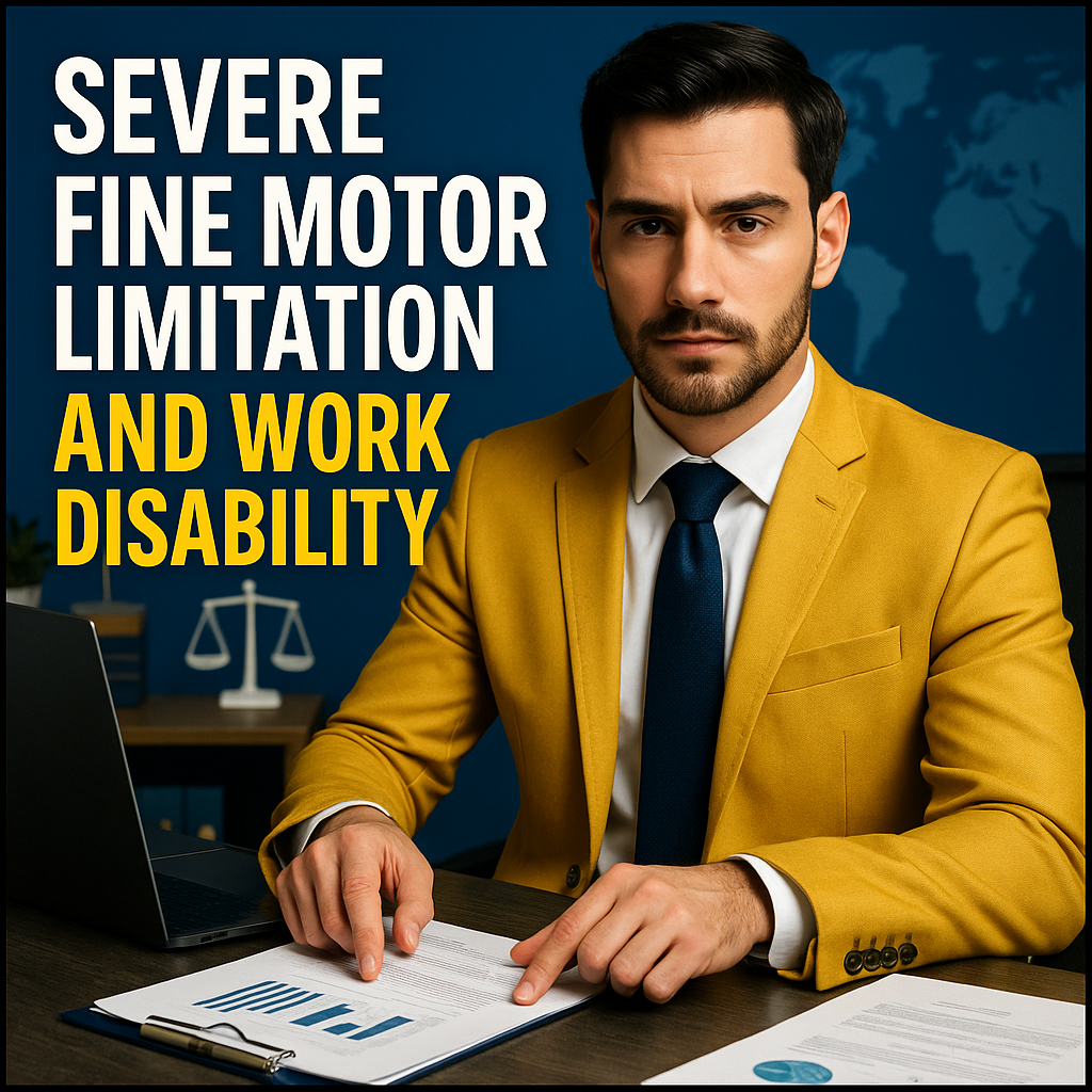 Severe limitation of fine motor skills in the dominant hand brings intense practical and legal challenges, particularly when it threatens job stability and income. Clear documentation of how the impairment affects concrete tasks is central to any fair assessment of disability or entitlement to benefits.