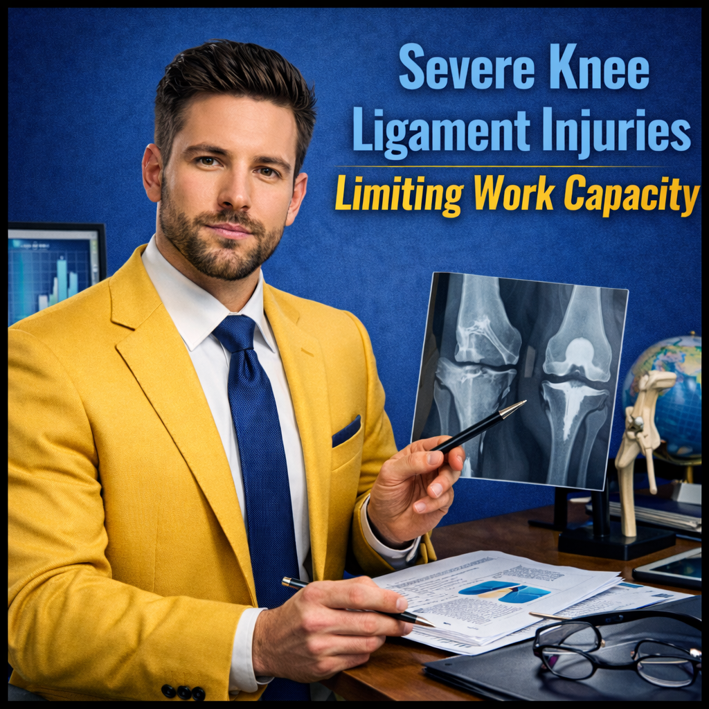 Severe ligament injuries of the knee (ACL, PCL, MCL) often look “straightforward” on an MRI, yet disability and claim outcomes frequently hinge on something else: how instability, pain, and limits show up in real work and daily function.