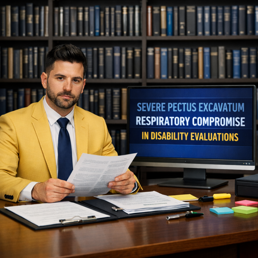 Severe pectus excavatum with respiratory compromise sits at a complex intersection of structural anatomy, physiology and legal standards for disability. Files that stay at the level of labels or photographs tend to generate prolonged disputes.