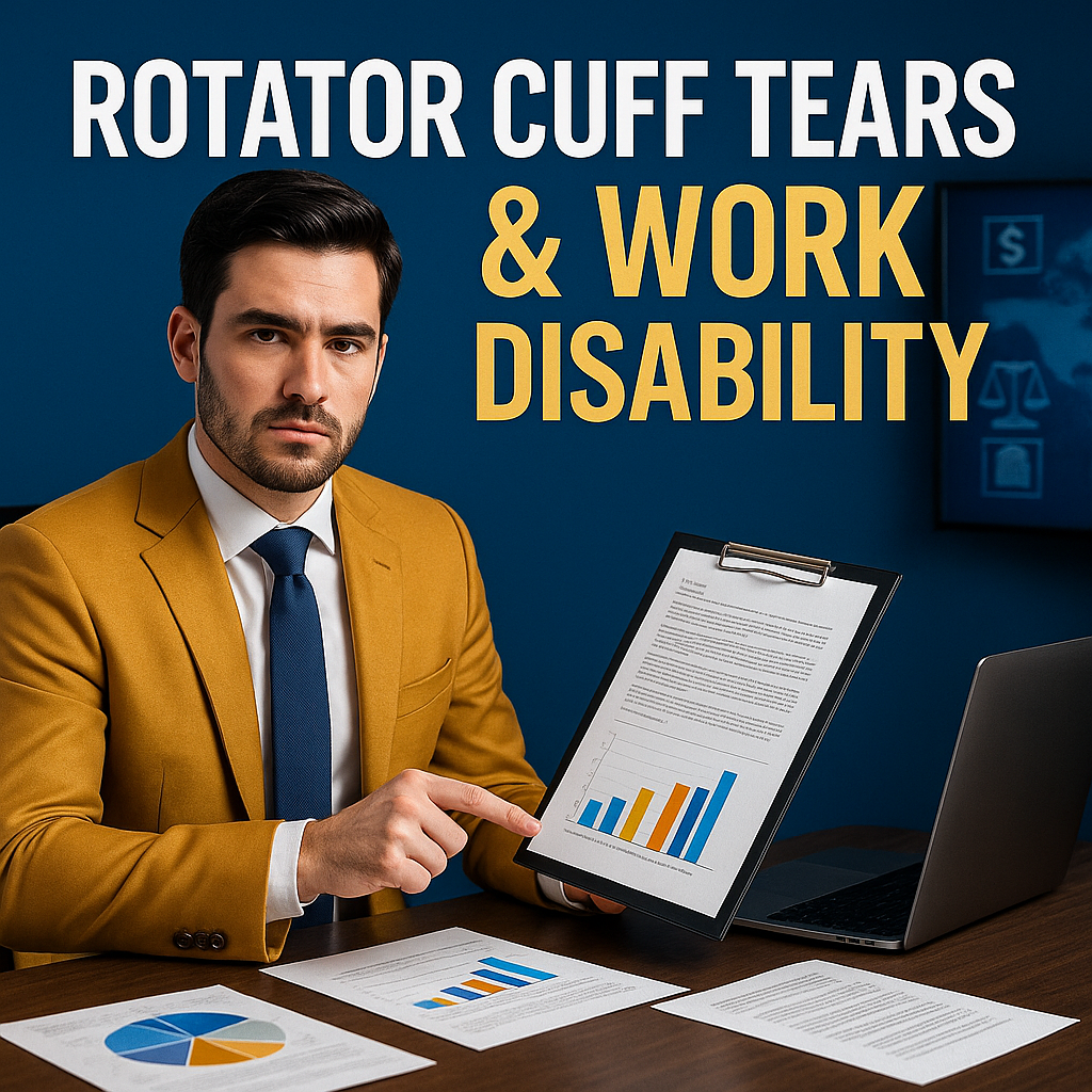 Shoulder rotator cuff tears with loss of function raise complex questions about work capacity, disability benefits and the level of medical proof required.