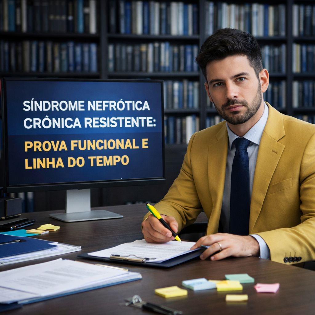Refratariedade na síndrome nefrótica exige linha do tempo e prova funcional consistentes para perícia e decisões administrativas.