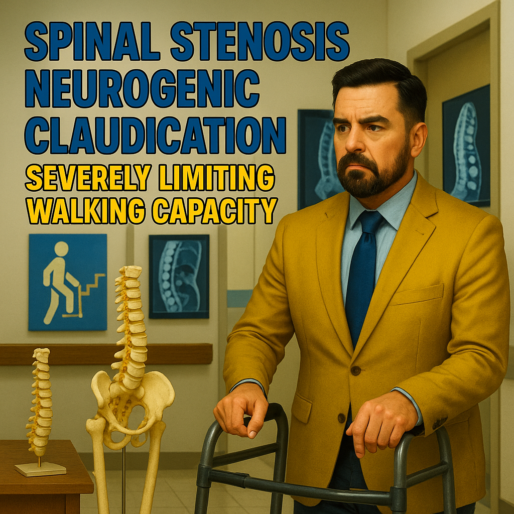 Spinal stenosis with neurogenic claudication can severely limit walking and standing, and clear documentation may support disability or income-support benefits.